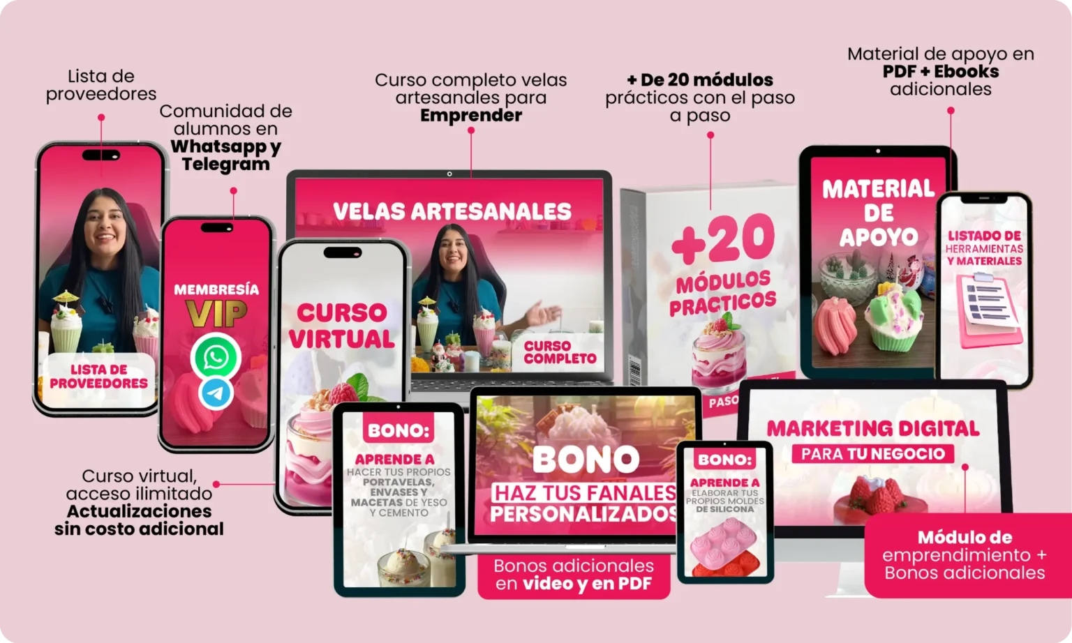 🔓 Acceso completo al Curso Principal, donde aprenderás paso a paso a crear velas decorativas de forma profesional.